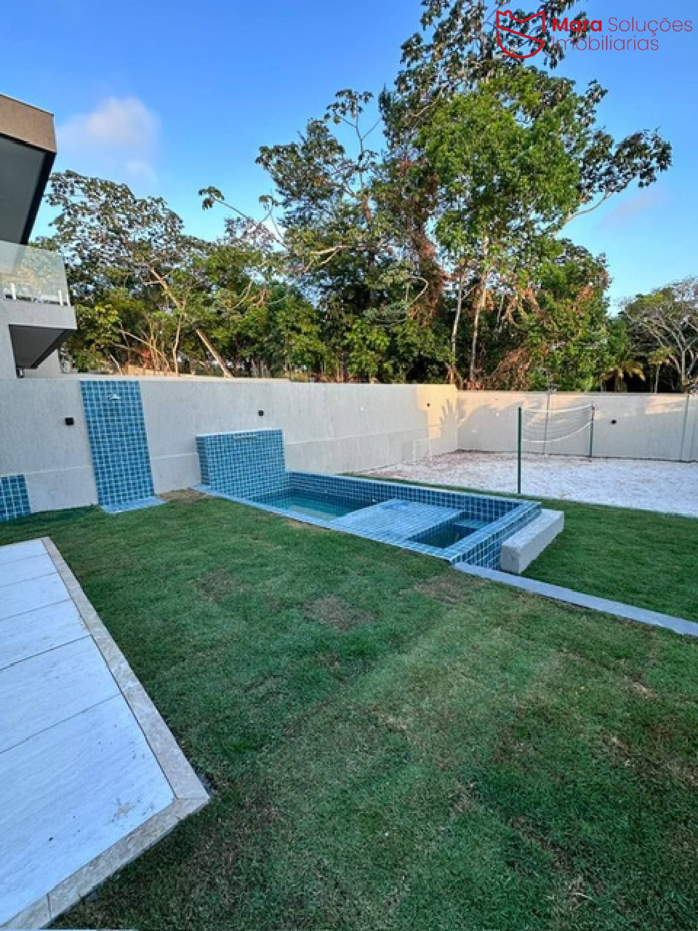 Piscina com cascata, prainha e banco d’água