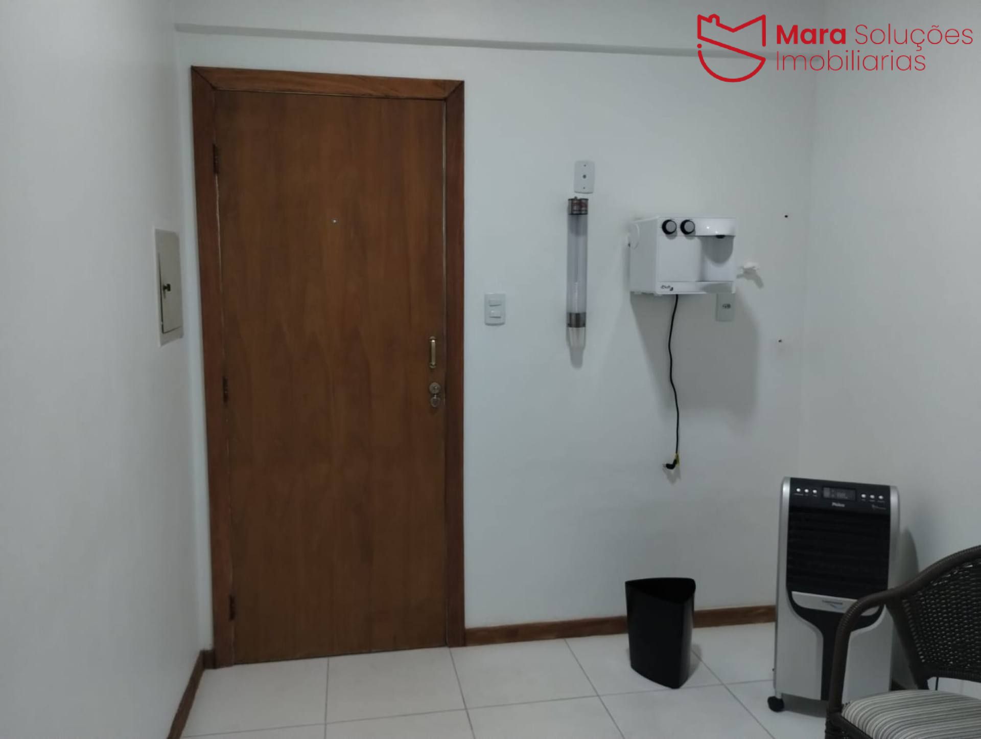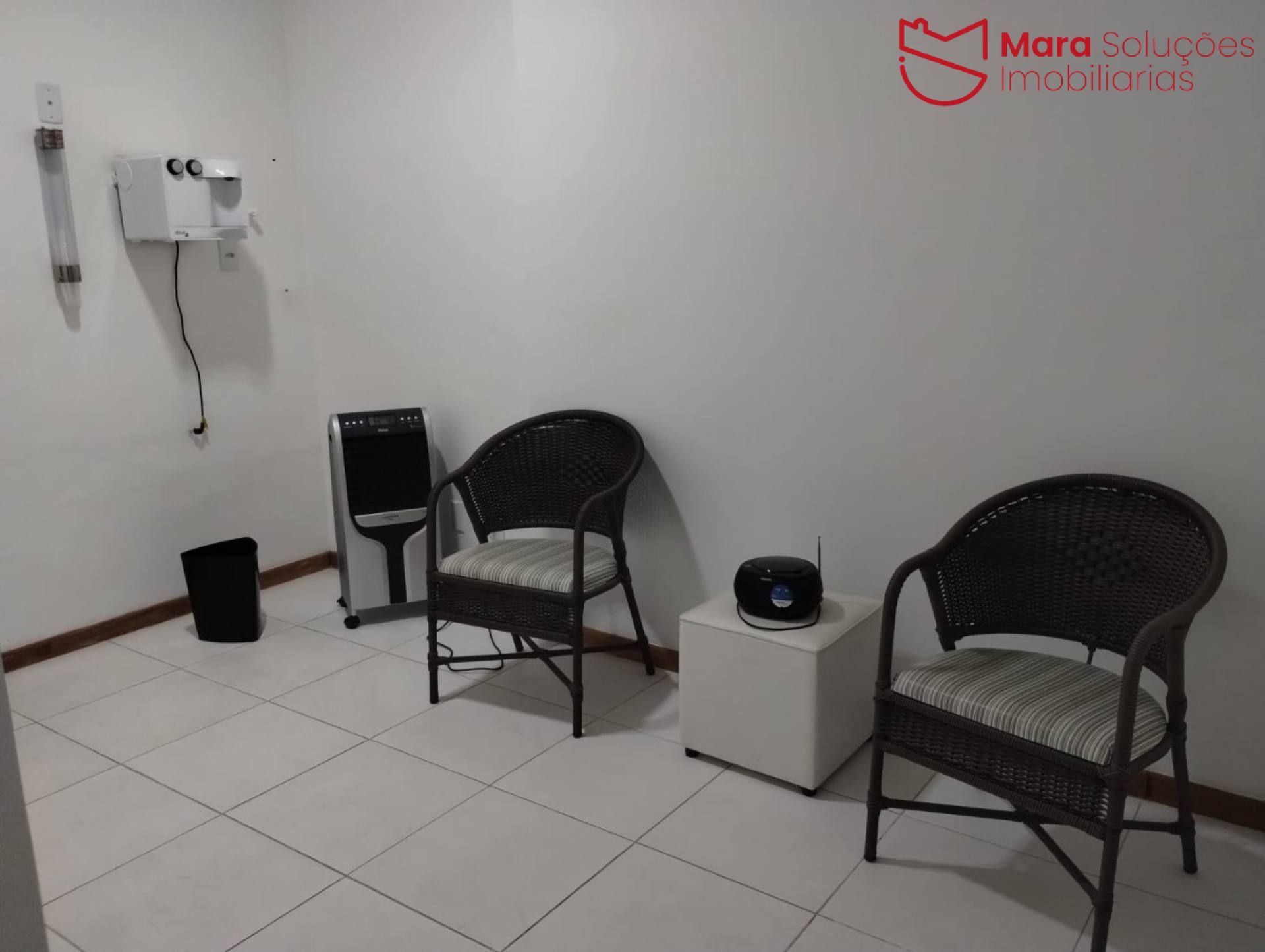 A sala será vendida com ar-condicionado, cortina e filtro de água já instalados, pronta para uso imediato.