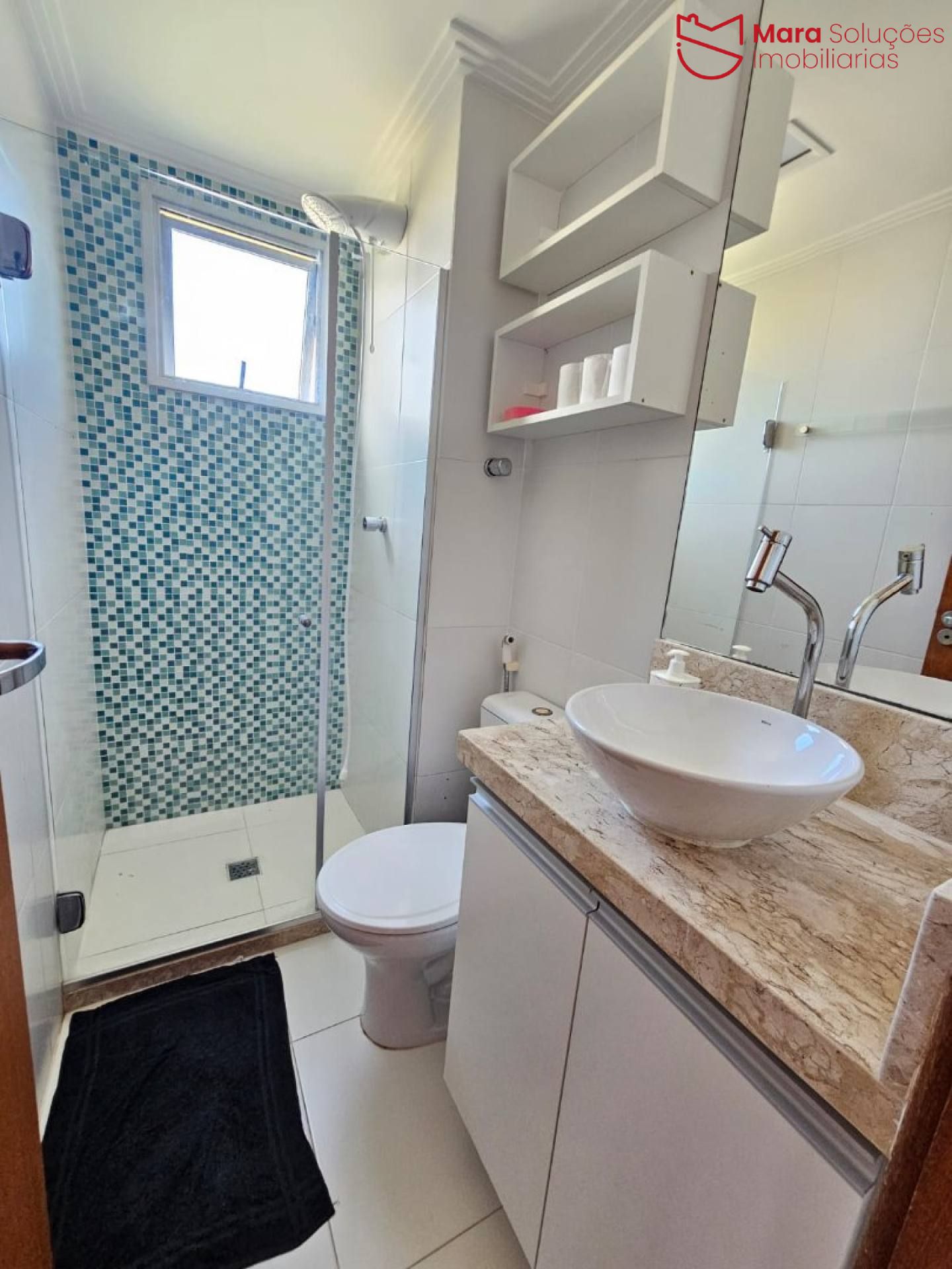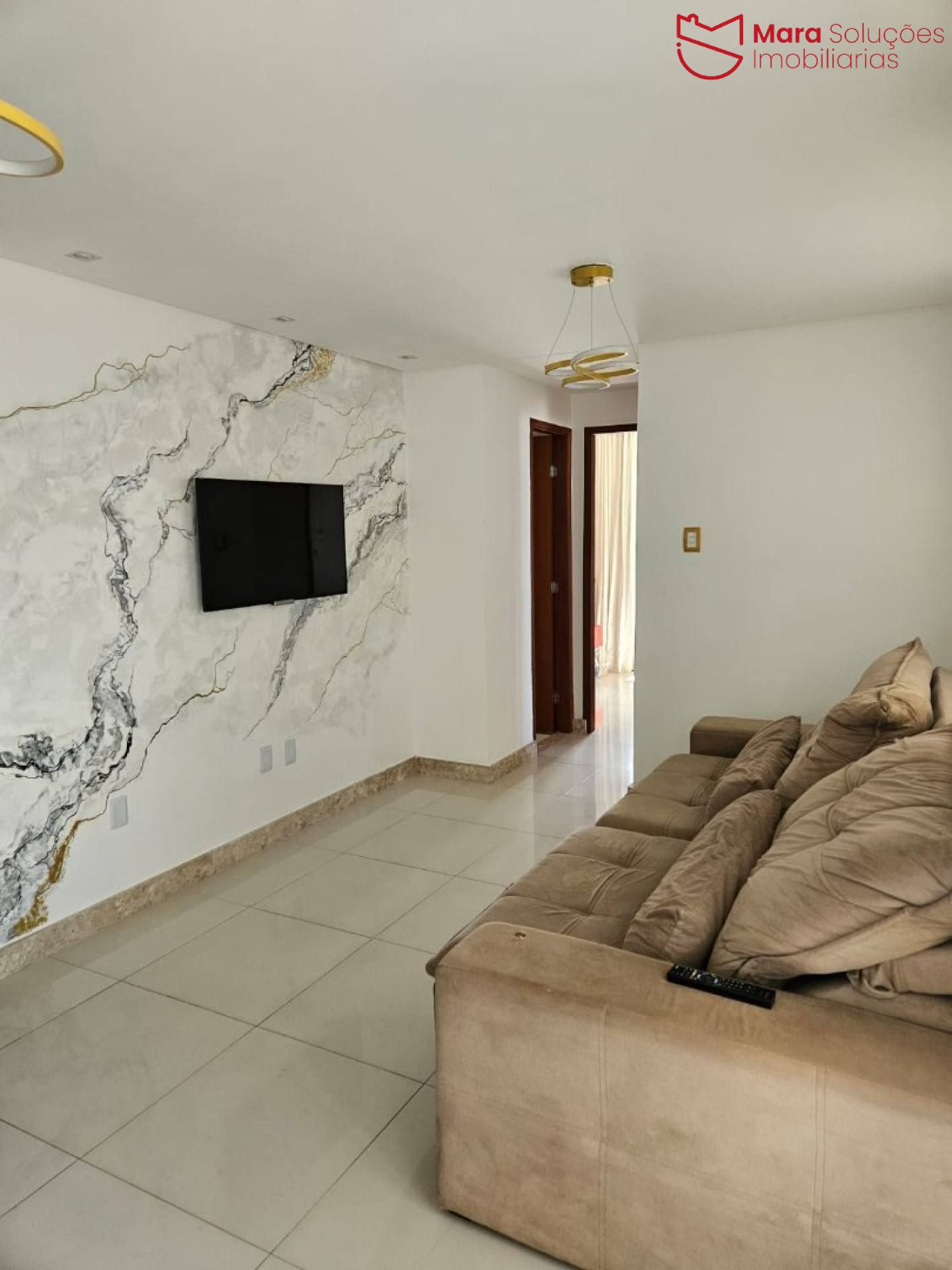 O imóvel está localizado no primeiro andar e conta com 60 m² de área construída, distribuídos em 2 quartos, sendo 1 suíte, sala confortável, varanda ampla, banheiro social e cozinha totalmente projetada, assim como os quartos e o banheiro, oferecendo praticidade e ótimo aproveitamento dos espaços.